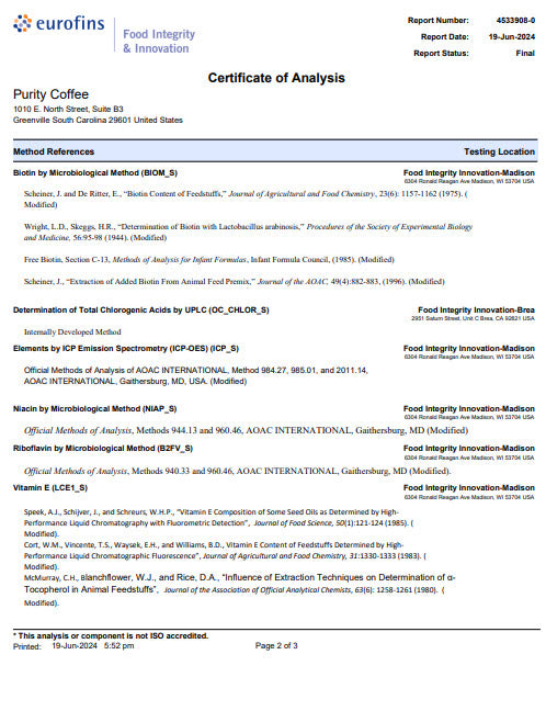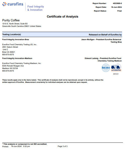 Purity Coffee contains only high-quality Arabica coffee beans with no additives or allergens.